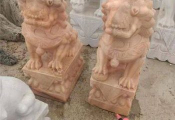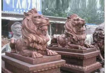 獅子雕塑,紅晚霞染大理石庭院戶外裝飾
