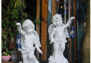 精美靈動的漢白玉提燈小天使石雕