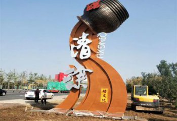 大型不銹鋼彩繪創意醋缸標識牌雕塑