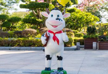 玻璃鋼牛雕塑,為幼兒園的幼兒們趴著喝奶更添樂趣