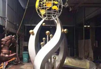 不銹鋼室內(nèi)創(chuàng)意抽象向上地球儀雕塑