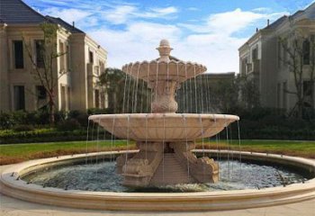 精美紅石雕晚霞別墅小區(qū)裝飾噴泉擺件