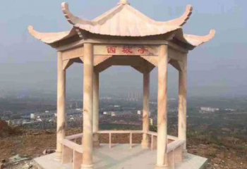 美麗的晚霞石雕戶外涼亭