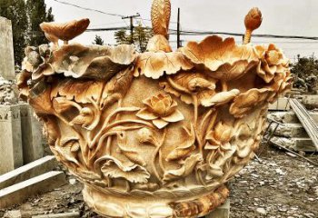 晚霞紅蓮花石雕魚缸雕塑