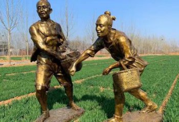 戶外園林玻璃鋼仿銅耕地的人物雕塑