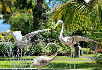 不銹鋼仿銅公園池塘雕塑仙鶴