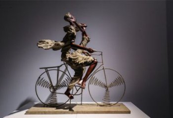 仿銅雕塑人物騎自行車玻璃鋼裝飾廣場和街道