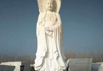 經典傳統工藝精致大理石浮雕觀音站神像擺件