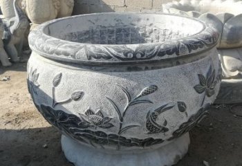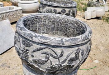 古典庭院裝飾-青石浮雕水缸荷花雕塑