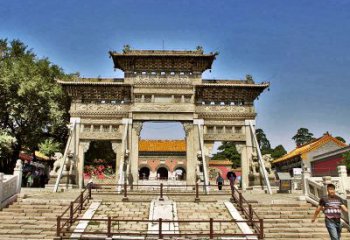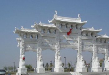 牌樓雕塑可以追溯到原始社會氏族聚居村落入口處的門型建筑。門柱花崗巖牌樓雕塑起源于佛教舍利塔前的石門甬道,在漢代稱為闕,六朝稱為標,唐代稱為烏頭門,宋代官名表楬、閥閱、烏頭門,俗名欞星門。簡易牌樓雕塑非常簡單,就是兩根立柱加上一塊橫木,兩扇對開木門,較多的注重作為大門的實用價值。